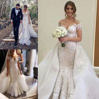 Cap Sleeve Beaded Lace Long Train Mermaid Wedding Dress Patterns