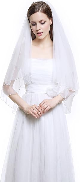 2 Tier Fingertip Bridal Wedding Veil Pencil Edge With Comb V38