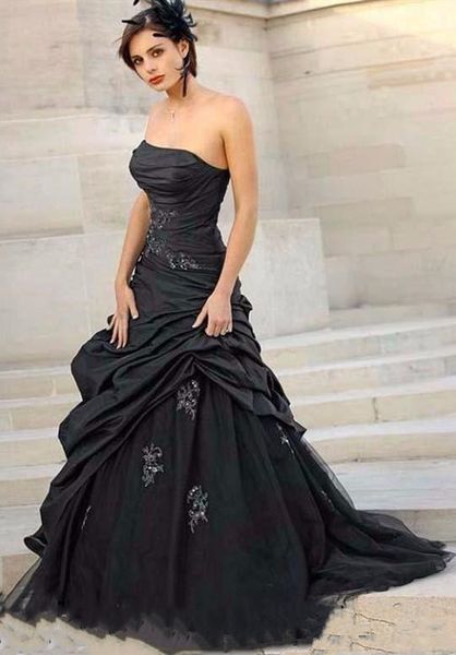 Discount 2019 Black Drop Waist A Line Wedding Dresses With