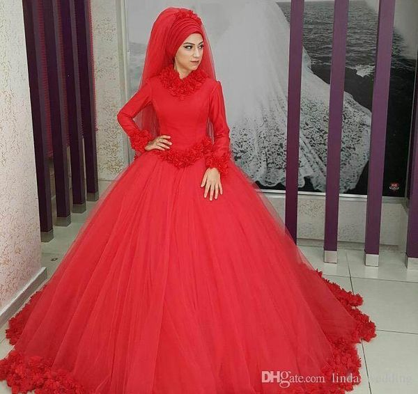 2019 Muslim Red Wedding Dress Long Sleeves Formal Holiday Wear