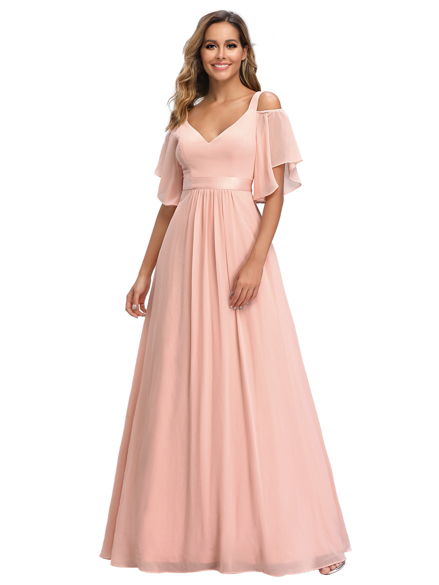 Ever Pretty Long Pink Short Sleeve Bridesmaid Wedding Dress Formal