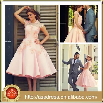 Sma54 Best Design Tea Length Dubai Appliqued Colored Reception