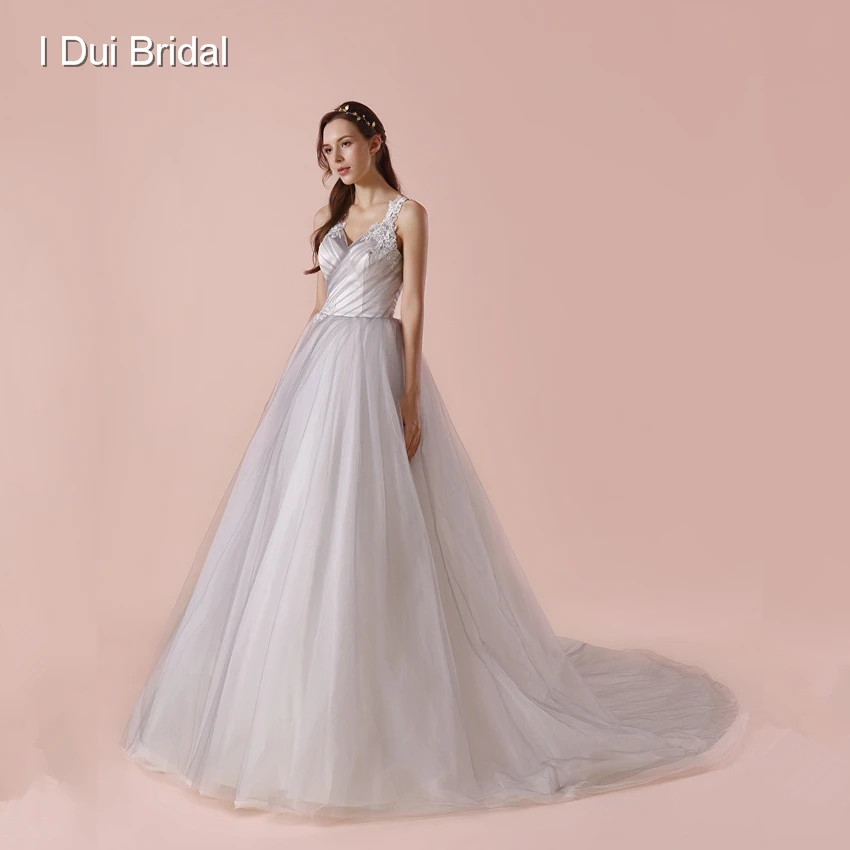 Smoke Grey Wedding Dress A Line Pleated Bridal Gown New Arrival In
