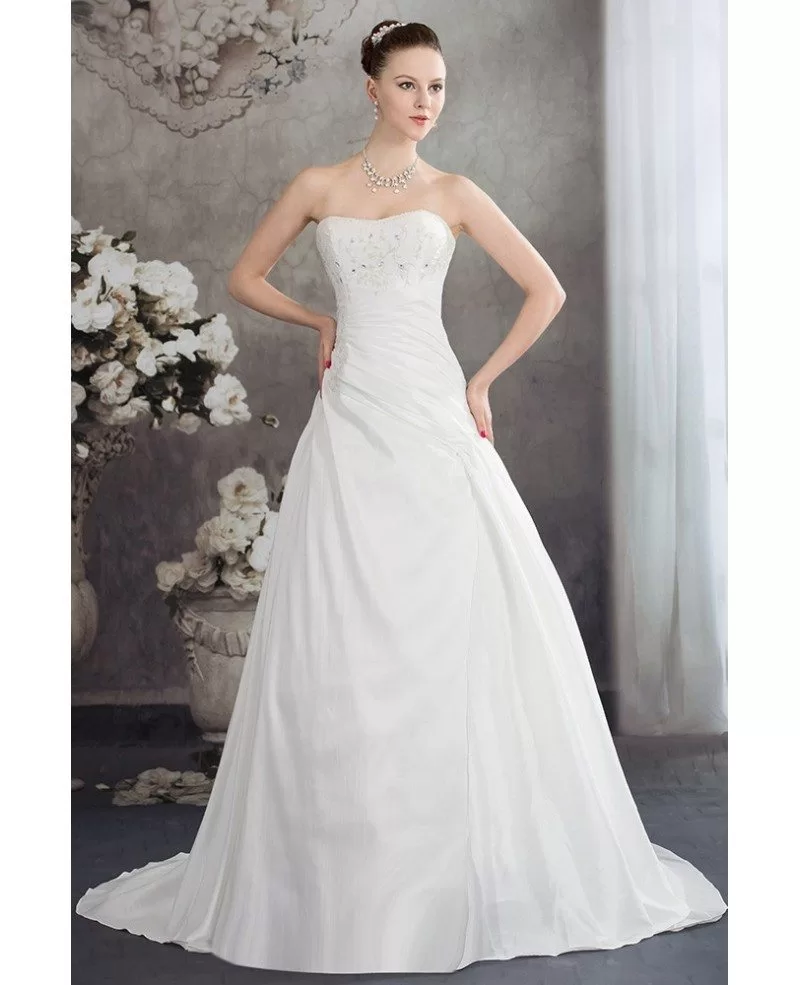 Pleated Taffeta Strapless Ballgown Wedding Dress With Beading