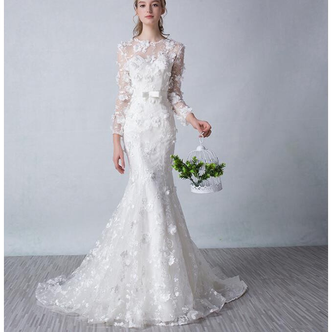 Fish Tail Small Drag Thin Lace Flower Bride Wedding Dress Shopee