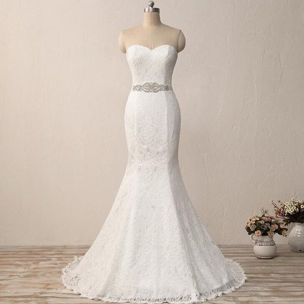 In Stock Elegant Lace Mermaid Wedding Dresses Cheap Beach Wedding