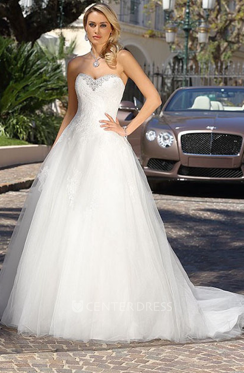 Ball Gown Sweetheart Appliqued Tulle Wedding Dress With Beading