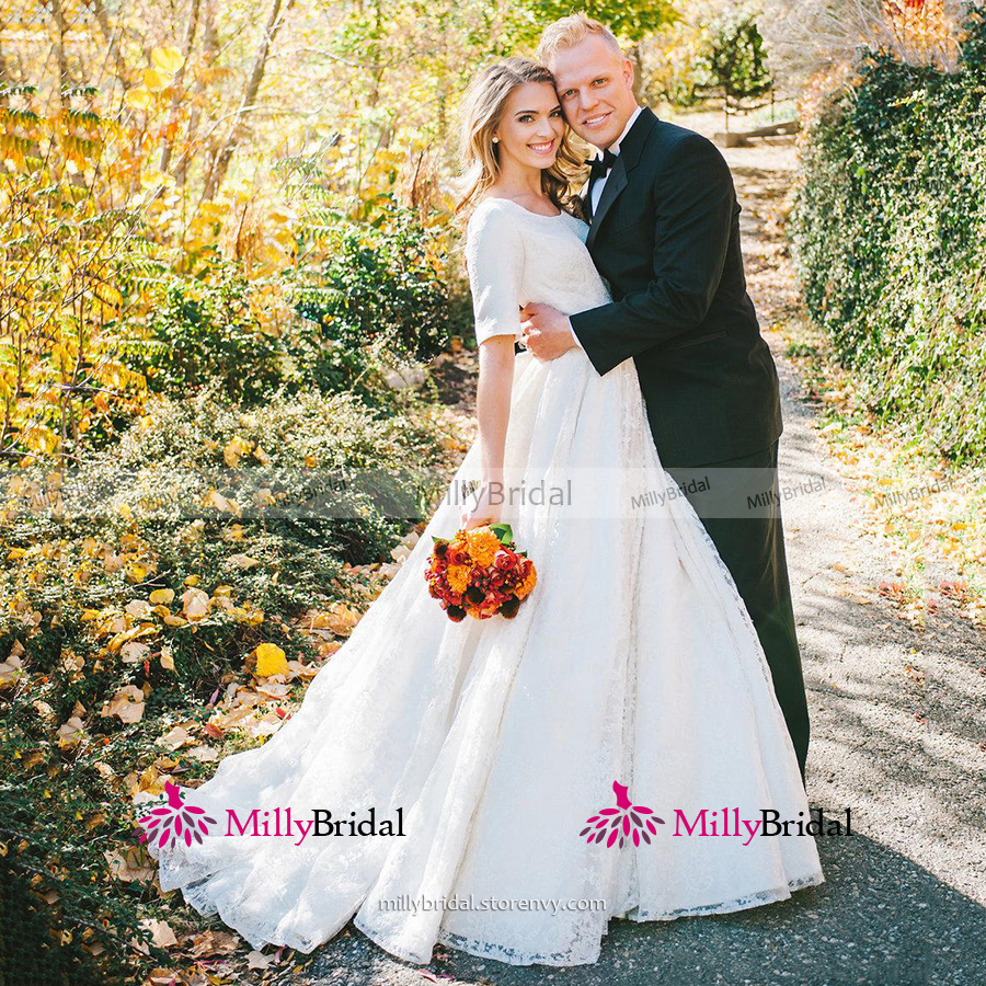 Modest Princess Wedding Dresses With Beaded Belt Scoop Neck 1 2