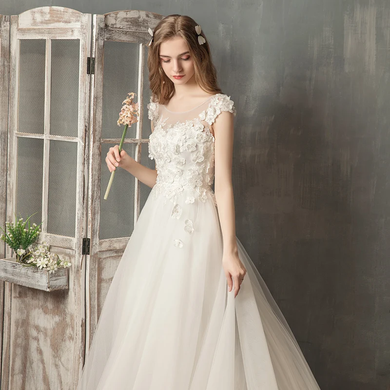 Flower Appliques Beautiful Wedding Dress 2019 February 2020