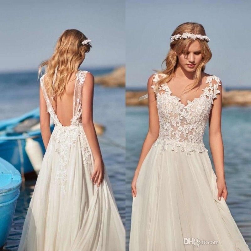 Discount Simple Design Bohemian A Line Beach Wedding Dresses 2019