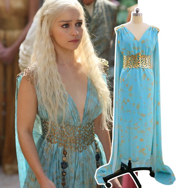 Long Blue Dress Cosplay Game Of Thrones Daenerys Targaryen Wedding