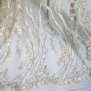 1 Yard 51 Wide Ivory Gold Flower Embroidery Lace Fabric For