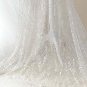 Shiny Sequin Beads Ivory Mesh Lace Fabric For Wedding Dress Bridal