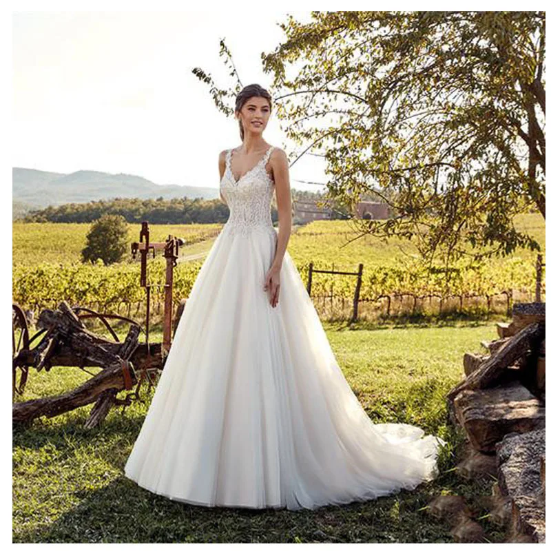 Eightale Wedding Dresses 2019 Spaghetti Straps V Neck Boho Bride