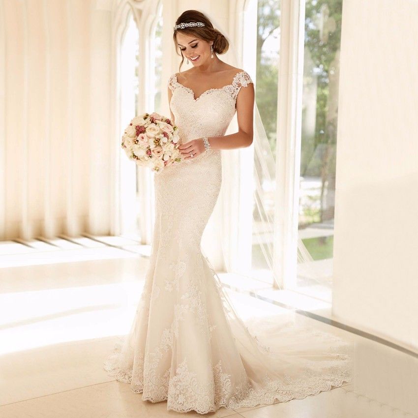 2018 Designer Cap Sleeves Lace Wedding Dresses With Mermaid Wed