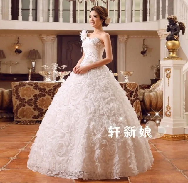 Chiffon Beads One Shoulder Floor Length Plus Size Bridal Gown