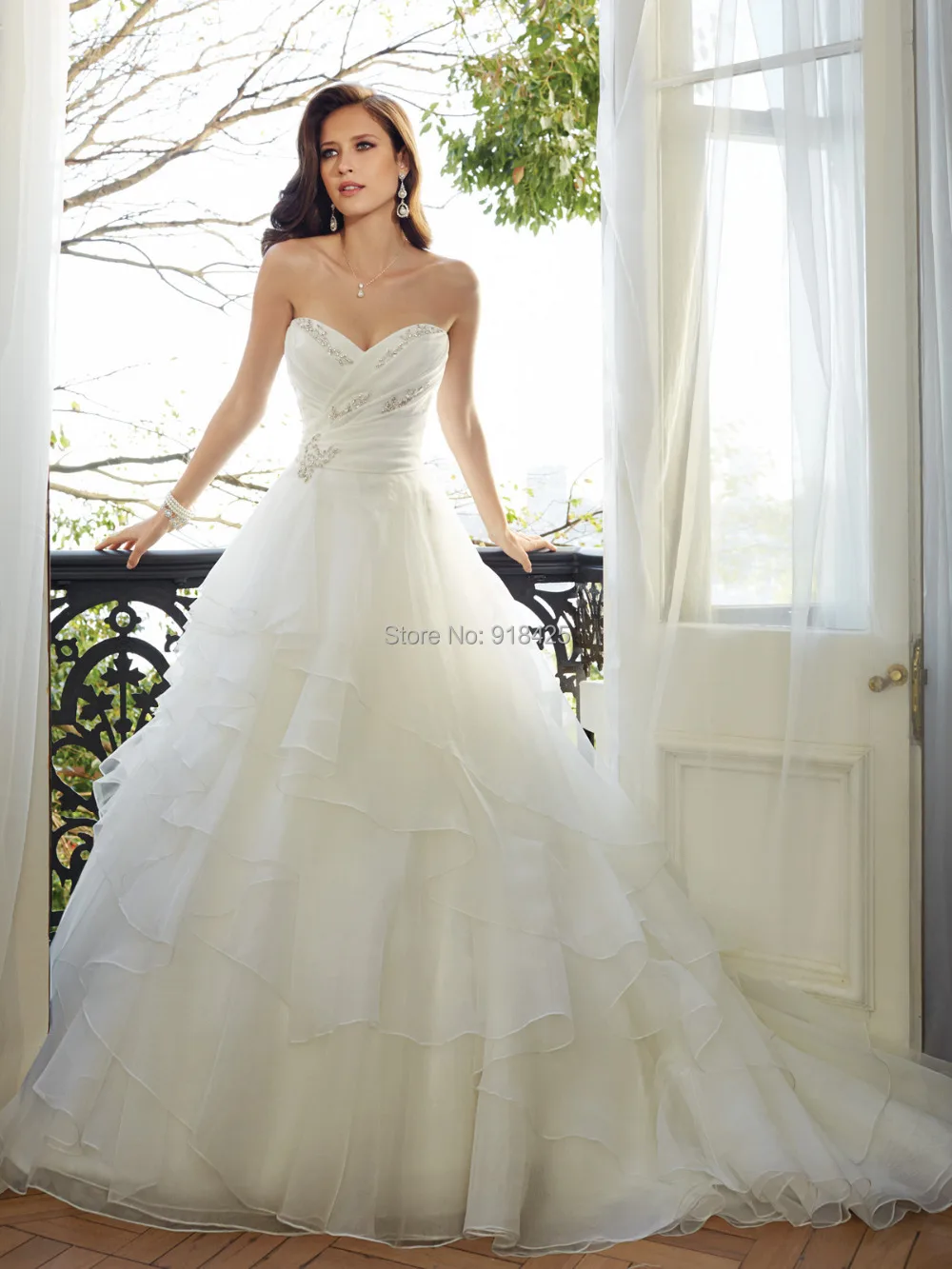 Gorgeous Cascading Ruffle White Wedding Dresses With Beads Sequins