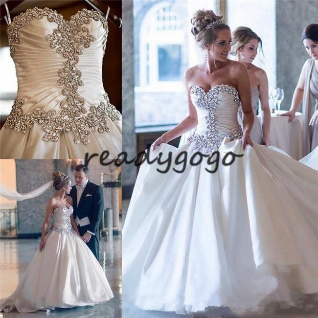 Princess Diamond Wedding Dresses Bling Crystal Strapless Corset