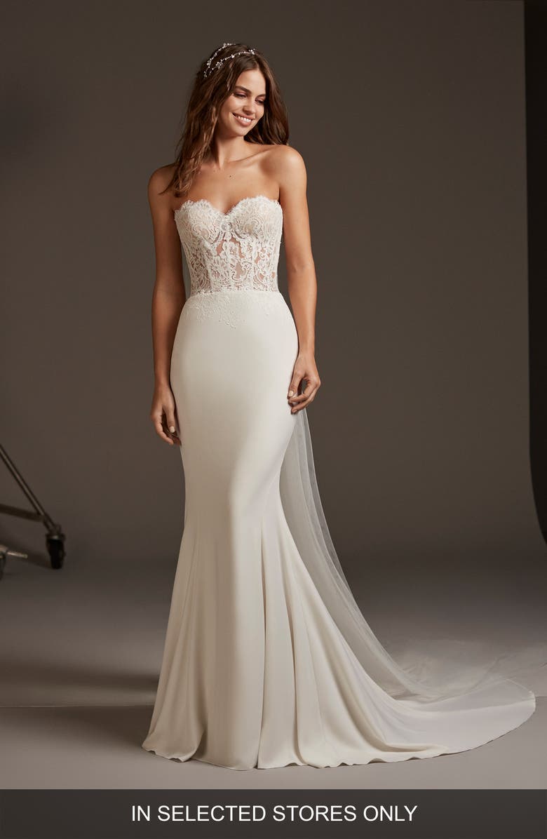 Pronovias Vela Strapless Lace Crepe Trumpet Wedding Dress