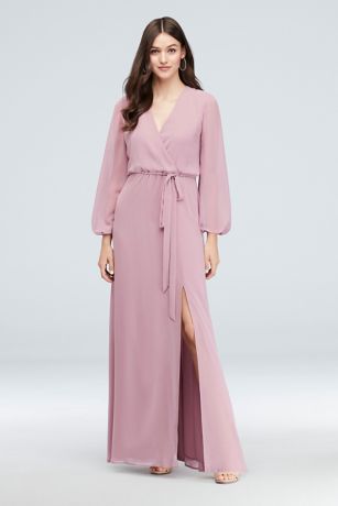 Long Sleeve Chiffon Faux Wrap Dress David S Bridal