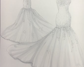 Keepsake Wedding Dress Drawing For Bride Anniversary Gift Etsy