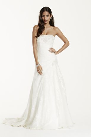 Strapless Lace A Line Gown With Side Split David S Bridal