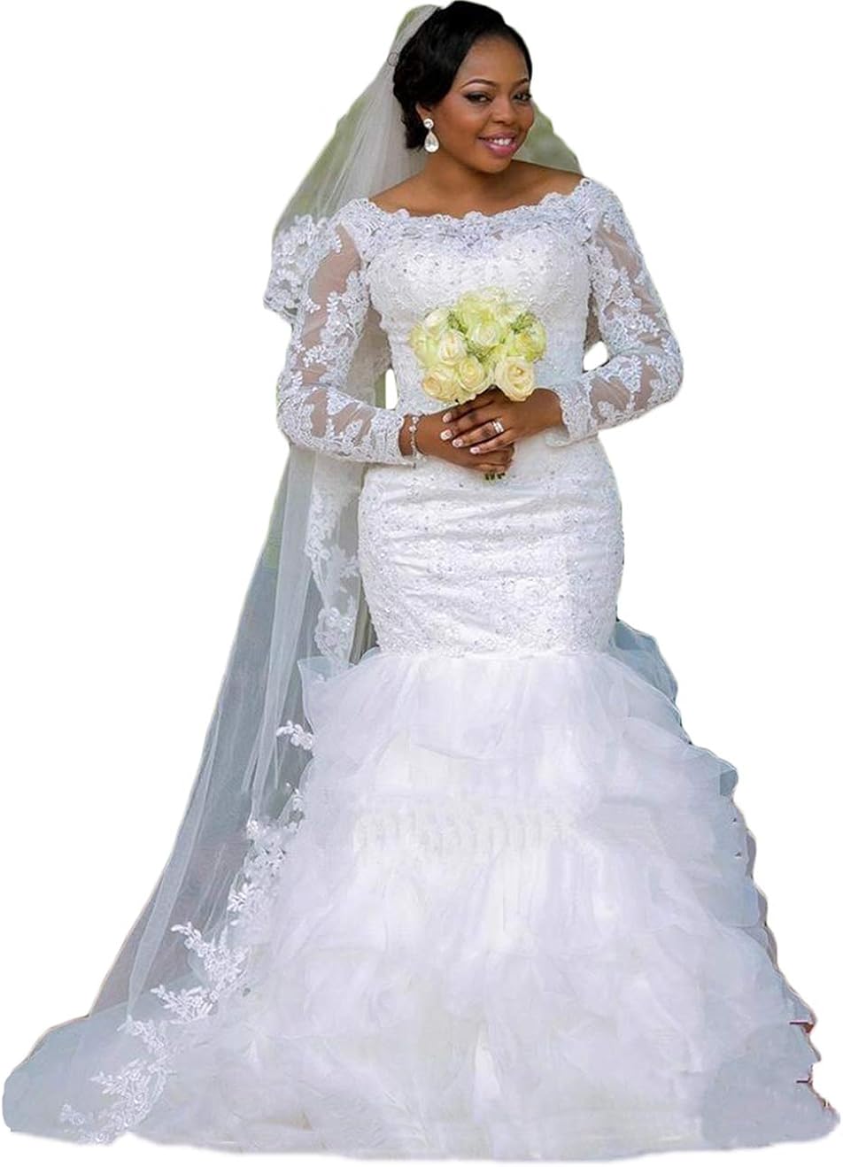 Ri Yun Women S Mermaid Wedding Dresses Ball Gown Long Sleeve Lace