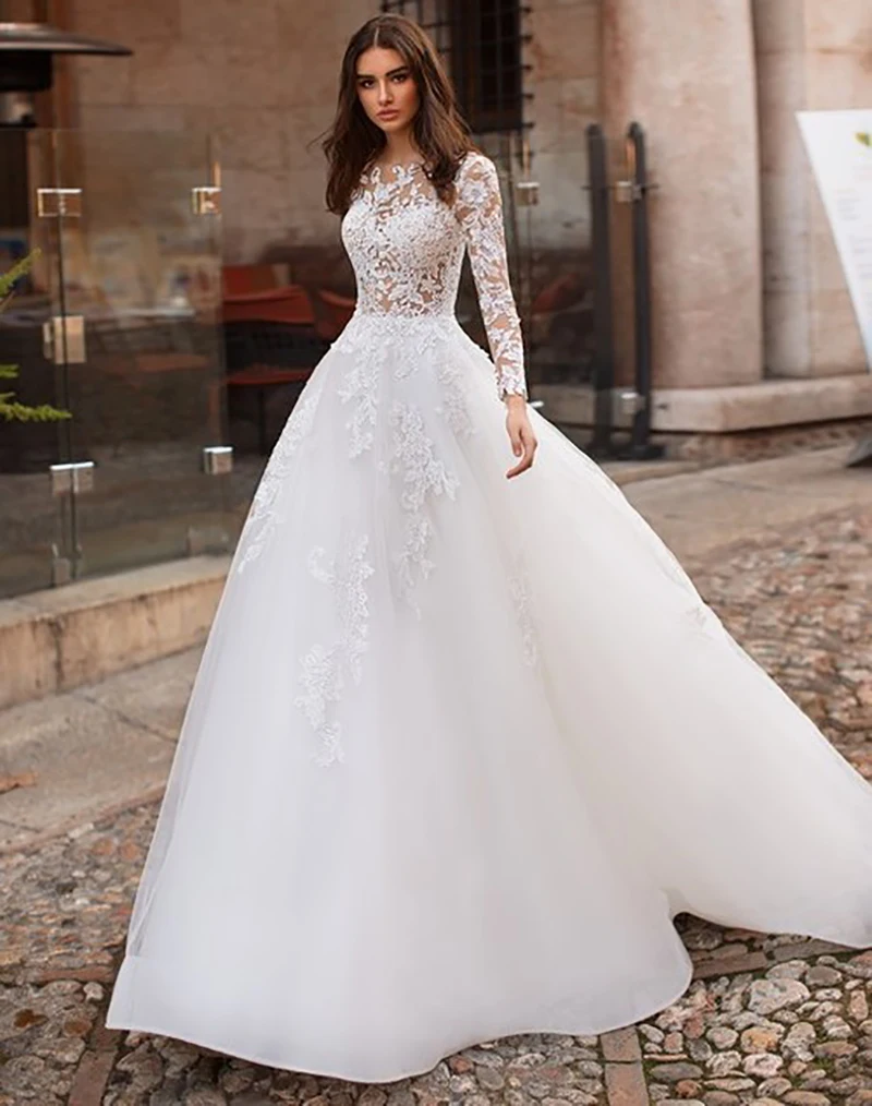 Wedding Dress Long Sleeves Vestidos De Novia Illusion Lace
