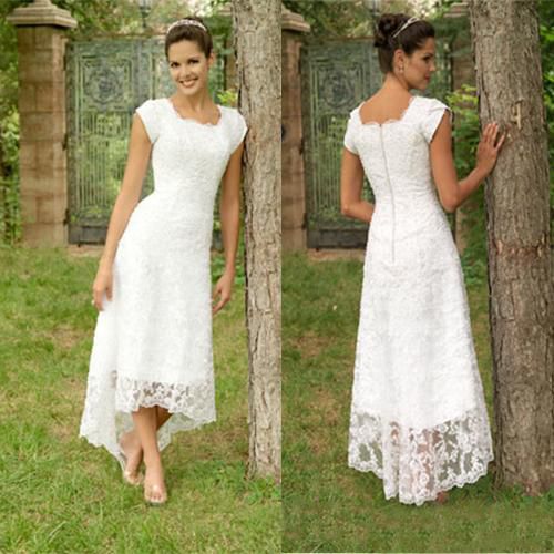 Discount Vintage Lace Wedding Dresses 2019 High Low Short Sleeves