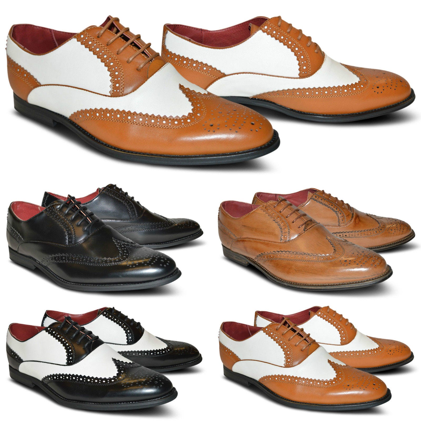 Mens Two Tone Brogues Wedding Dress Wingtip Oxford Lace Up Formal