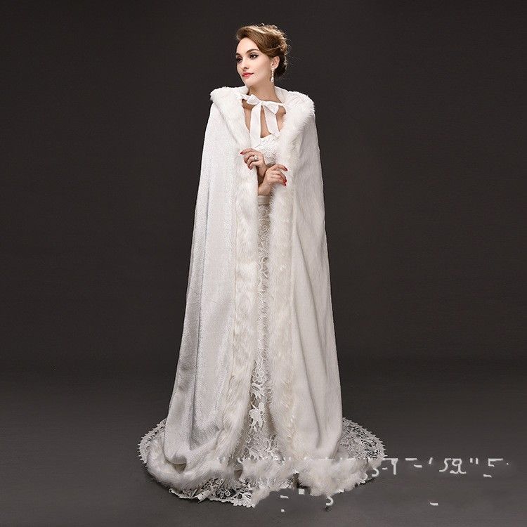 2017 Newest Ecru White Long Hooded Fuel Warmest Cloak Coat Bride