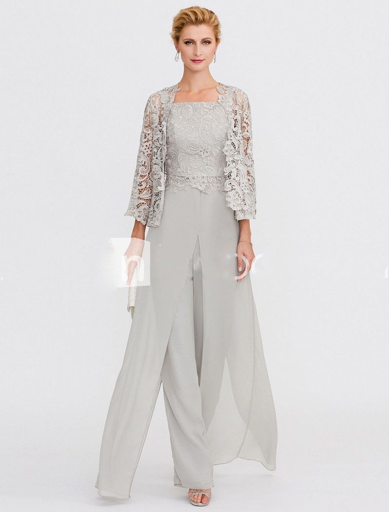 Grey Mother Of The Bride Dresses Women Jumpsuits With Jacket