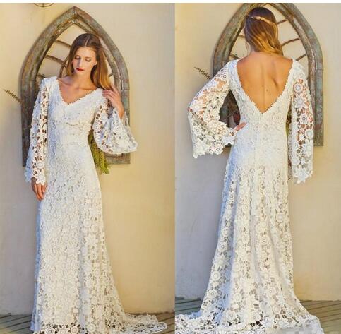 Vintage Full Lace Sheath Bohemian Hippie Wedding Dresses V Neck