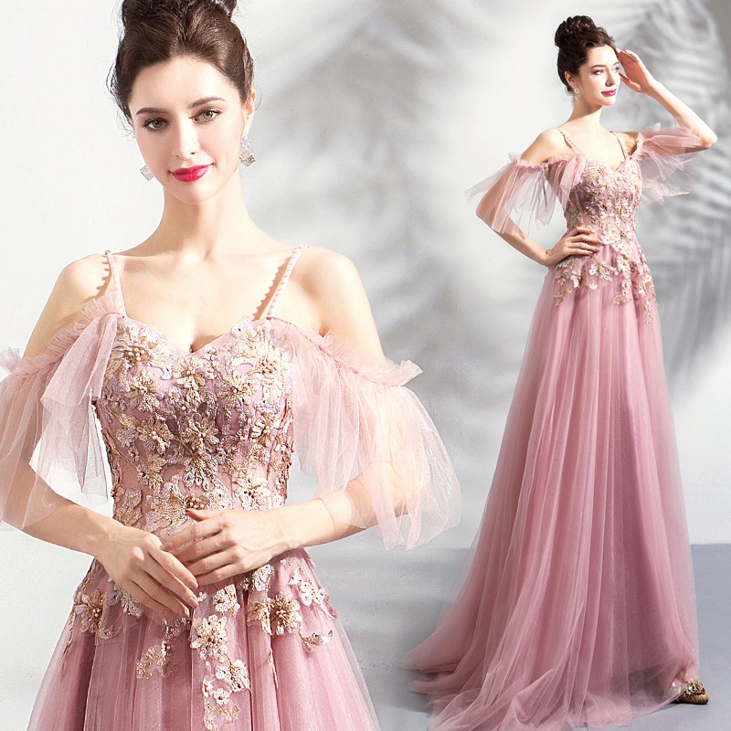 Careful Machine Open Shoulder Light Pink Bride Wedding Dress