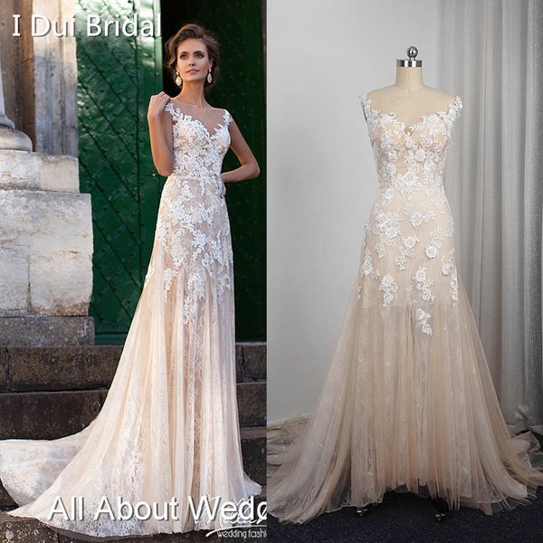 Discount A Line Champagne Light Wedding Dresses Real Photo