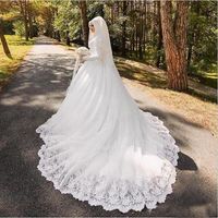 2019 White Muslim Wedding Dress Hijab Long Sleeves Lace Beaded