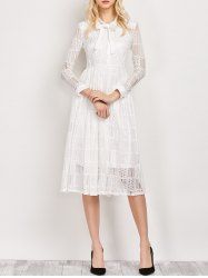 27 Off Long Sleeves Pussy Bow Lace Tea Length Wedding Dress