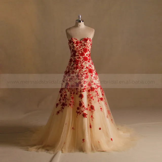 A Line Lace Red Gold Wedding Dress Pictures Buy Red Gold Wedding