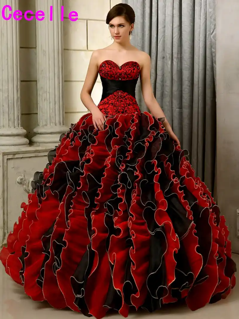 2019 Black And Red Gothic Wedding Dresses Ball Gown Colorful