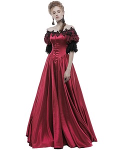 Long Red Gothic Wedding Dress Steampunk Victorian Foraml Prom Ball