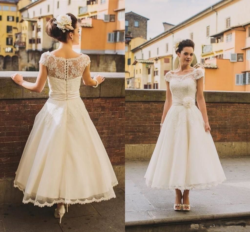 True Bride Tea Length Wedding Dress W325 Retro Wedding Dresses