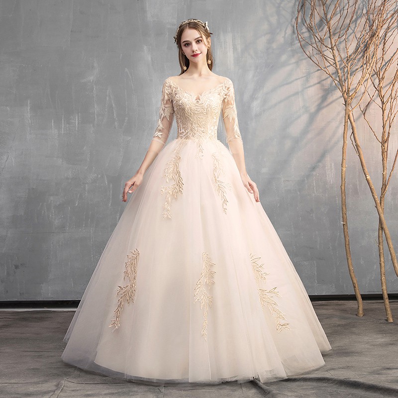 Wedding Dresses 2020 Ball Gown Off Shoulder Golden Lace Appliqued