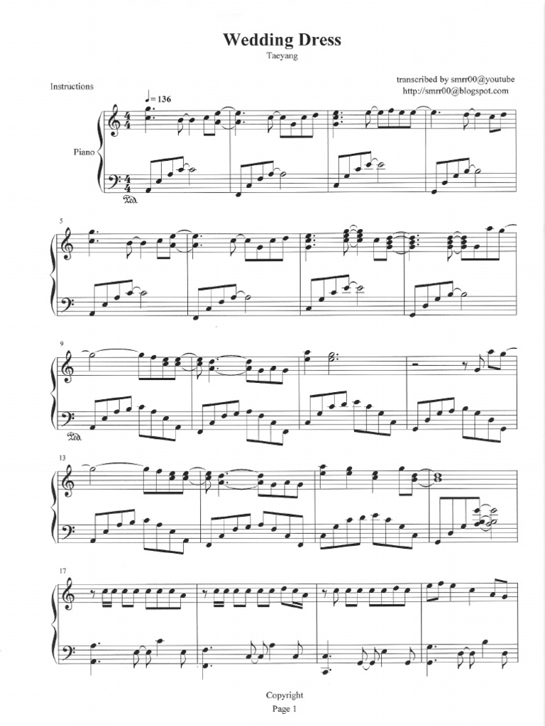 Taeyang Wedding Dress Piano Sheet Music Entertainment General