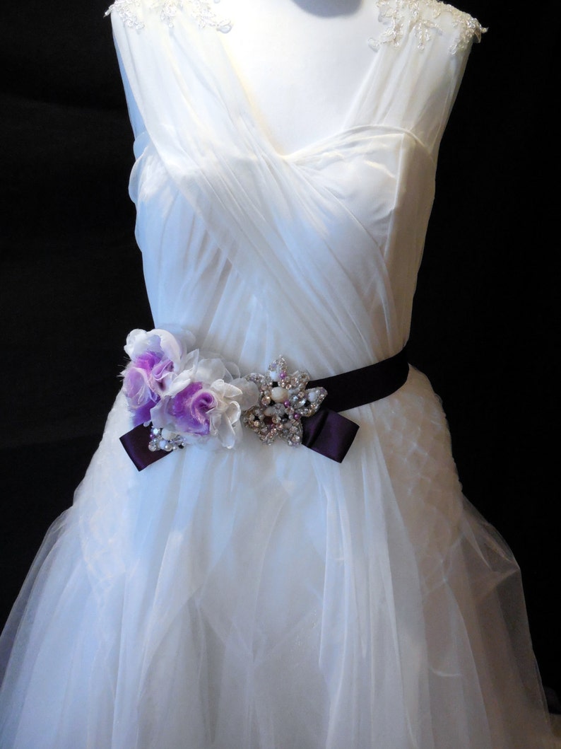 Sash Bridal Wedding Dress Sash Belt Lavender Flower Rhinestone